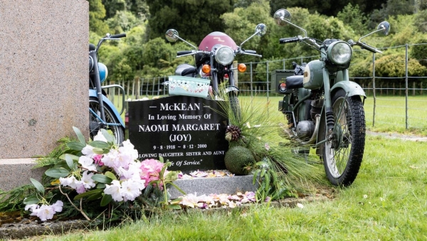 In 2023 a group of motorcycle enthusiasts rode on a pilgrimage to honour the 75th anniversary of their beloved Bantam bikes and having discovered McKean’s story, stopped at Rangiwahia Cemetery for a remembrance ceremony on their way from Bluff to Cape Reinga.